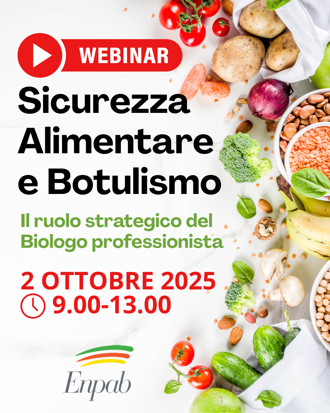 Alla luce delle recenti notizie sul rischio botulinico, Enpab organizza un webinar dedicato a questo argomento, con un focus sul contributo fondamentale del biologo nella tutela della salute pubblica.