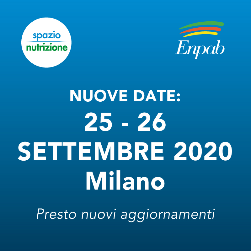 L'evento Spazio Nutrizione, che si svolgerà a Milano, è stato posticipato al 25 e 26 settembre. Per confermare la propria iscrizione: per chi è già registrato per le date di marzo non sarà necessaria alcuna comunicazione. L'iscrizione è automaticamente valida per le nuove date.