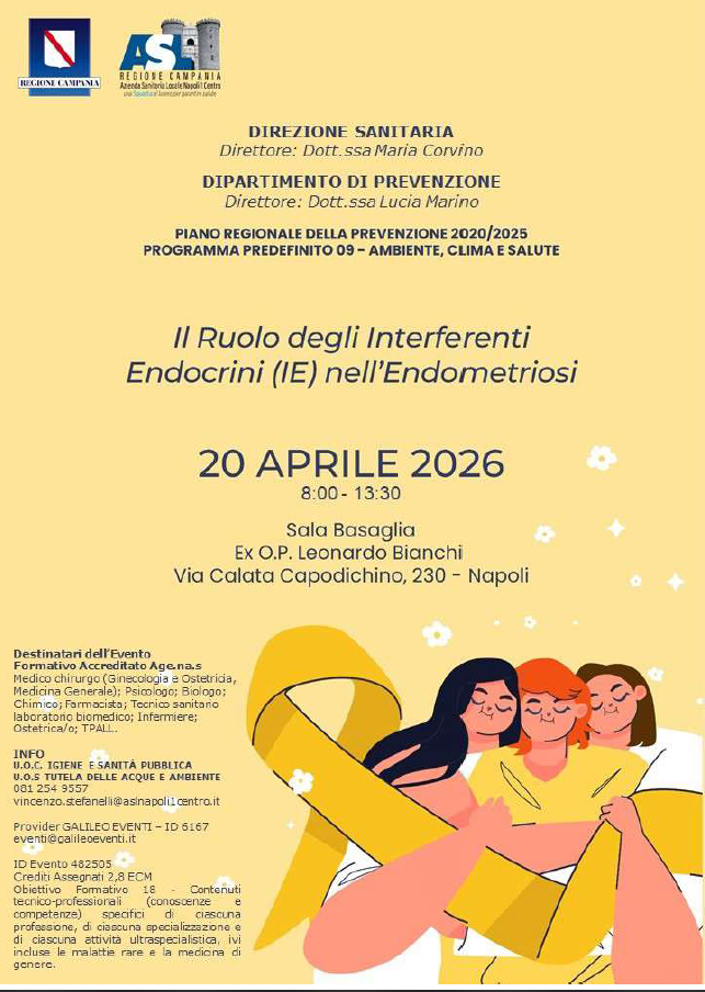 Si terrà il prossimo 20 aprile 2026, presso la Sala Basaglia dell’Ex O.P. Leonardo Bianchi di Napoli, l’evento formativo accreditato ECM dal titolo “Il ruolo degli Interferenti Endocrini (IE) nell’Endometriosi”.