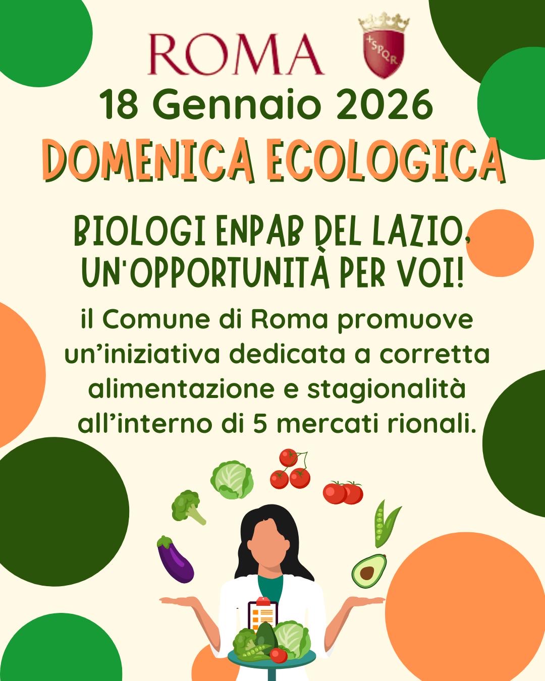 In occasione della Domenica Ecologica del 18 gennaio, Roma Capitale promuove un’iniziativa dedicata alla corretta alimentazione, alla stagionalità e alla sostenibilità, che si svolgerà all’interno di cinque mercati rionali cittadini.